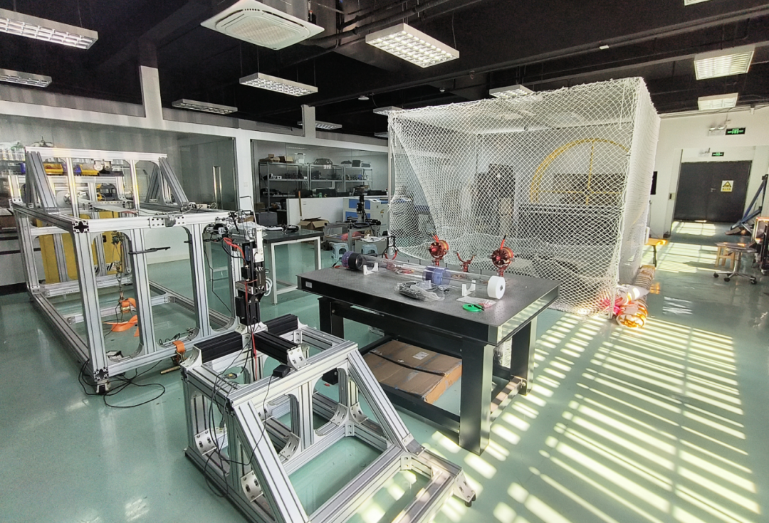 历经两年多研发建设,深思实验室这个外舱直径18米、内舱直径10米,由三个不同方向的风机矩阵组成的模拟装置,能支持4米翼展的航空器在这里做垂直起降、悬停等飞行姿态的空气动力学研究。