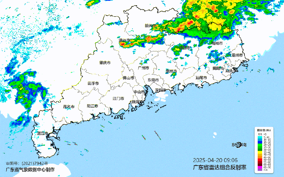 刚过去的19日至20日早晨,粤北的韶关、清远等地已经历了大雨到暴雨,局部还下了大暴雨,并伴有8级左右雷雨大风。粤北是(雷)阵雨的主场,局部雨势强劲,并伴有强对流。