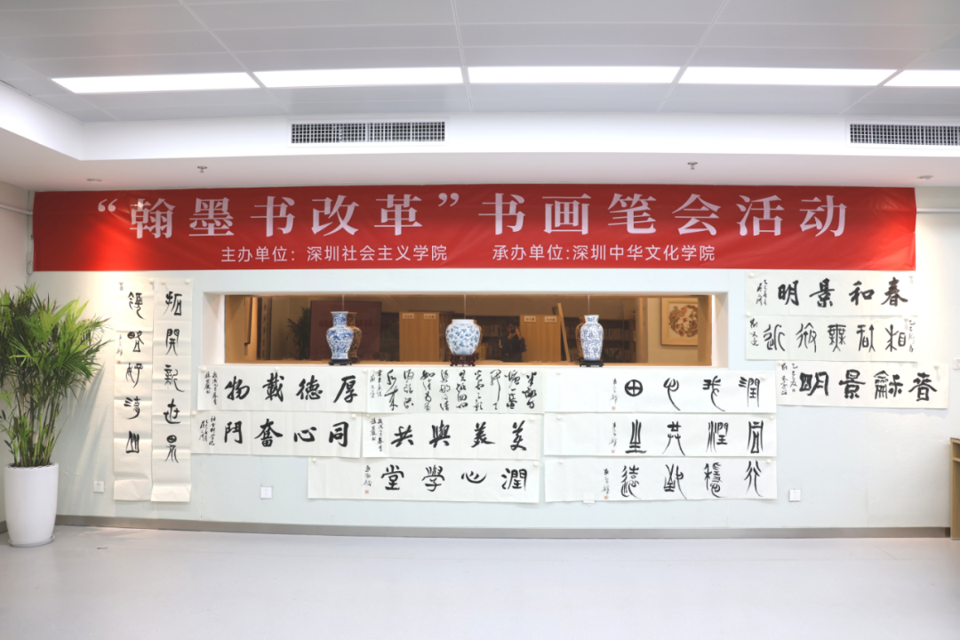 4月28日,深圳社会主义学院(深圳中华文化学院)(以下简称“深圳社院”)举办“翰墨书改革”主题书画笔会活动。市政协副主席、民建深圳市委会主委、深圳社院院长乔恒利出席活动并致辞,省政协常委、市人大常委会委员、深圳市党外知识分子联谊会会长谭刚,市委统战部副部长、二级巡视员周文军,深圳社院常务副院长还光荣出席活动,中书协会员、中美协会员、民革深圳市中山书画院院长许介川等知名书法家应邀参加笔会。本次活动由深圳社院副院长吴小池主持。