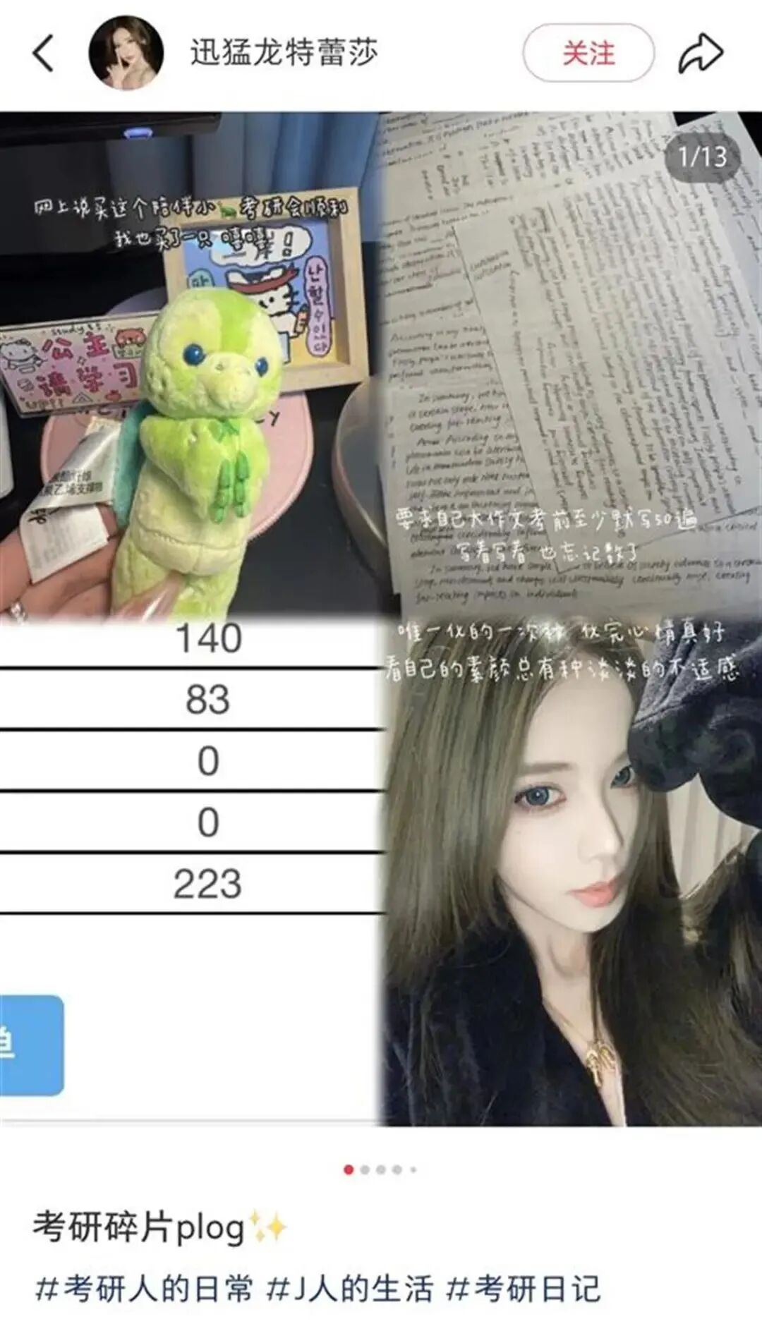 此前,有媒体报道称有600万粉丝的网红“迅猛龙特蕾莎”考上了复旦。据介绍,“迅猛龙”目前在抖音上拥有超600万粉丝,因长相艳丽、声音甜美走红,被网友称为“厦门林志玲”。此前,她在直播中表示,为了专心备战考研,她停播了三个月,其间关闭了所有商务合作通道,全身心地投入到学习中。