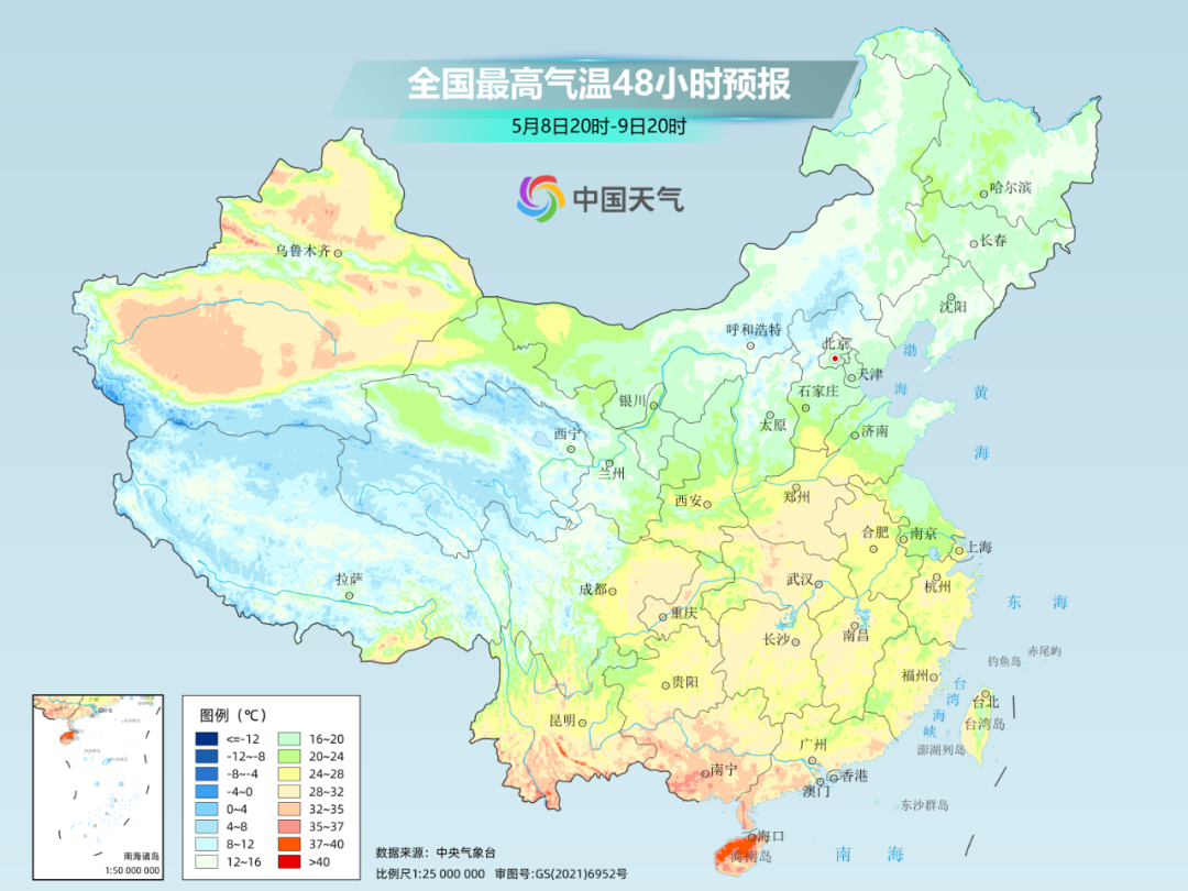 气温方面,未来三天,在冷空气和阴雨的打压下,南北方多地气温都会波动偏低,长江中下游的合肥、南京、上海等地最高气温仅25℃上下。不过,雨水退场后,升温将重夺主角,本周末东北、华北多地气温或创今年新高,华北中南部、黄淮等地将重返30℃以上,夏日感扑面而来,短袖可以准备起来啦!