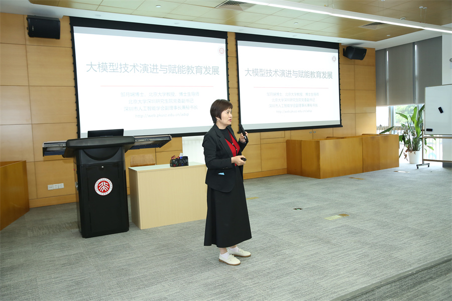 科学副校长邹月娴教授从生成式AI与大模型技术切入,系统性拆解人工智能与教育融合的实践框架实实在在的给校长书记们带来了一节生动形象的专业讲座。“当AI能批作业、写教案、讲知识点,教育者的不可替代性在哪里?”邹月娴教授抛出核心命题。“技术向善要由教育者引领,我希望这节课的真正价值,在于激发教育者的主动进化意识。”邹月娴总结道。