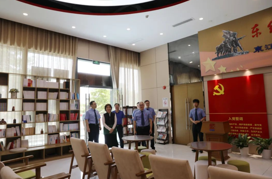 马晓歌一行参观了坪山区检察院12309检察服务中心、案管中心、未检办案区、检察听证室、检察文化中心等办公办案及检察文化场所,并实地察看了普法宣传阵地“检园·大万”。
