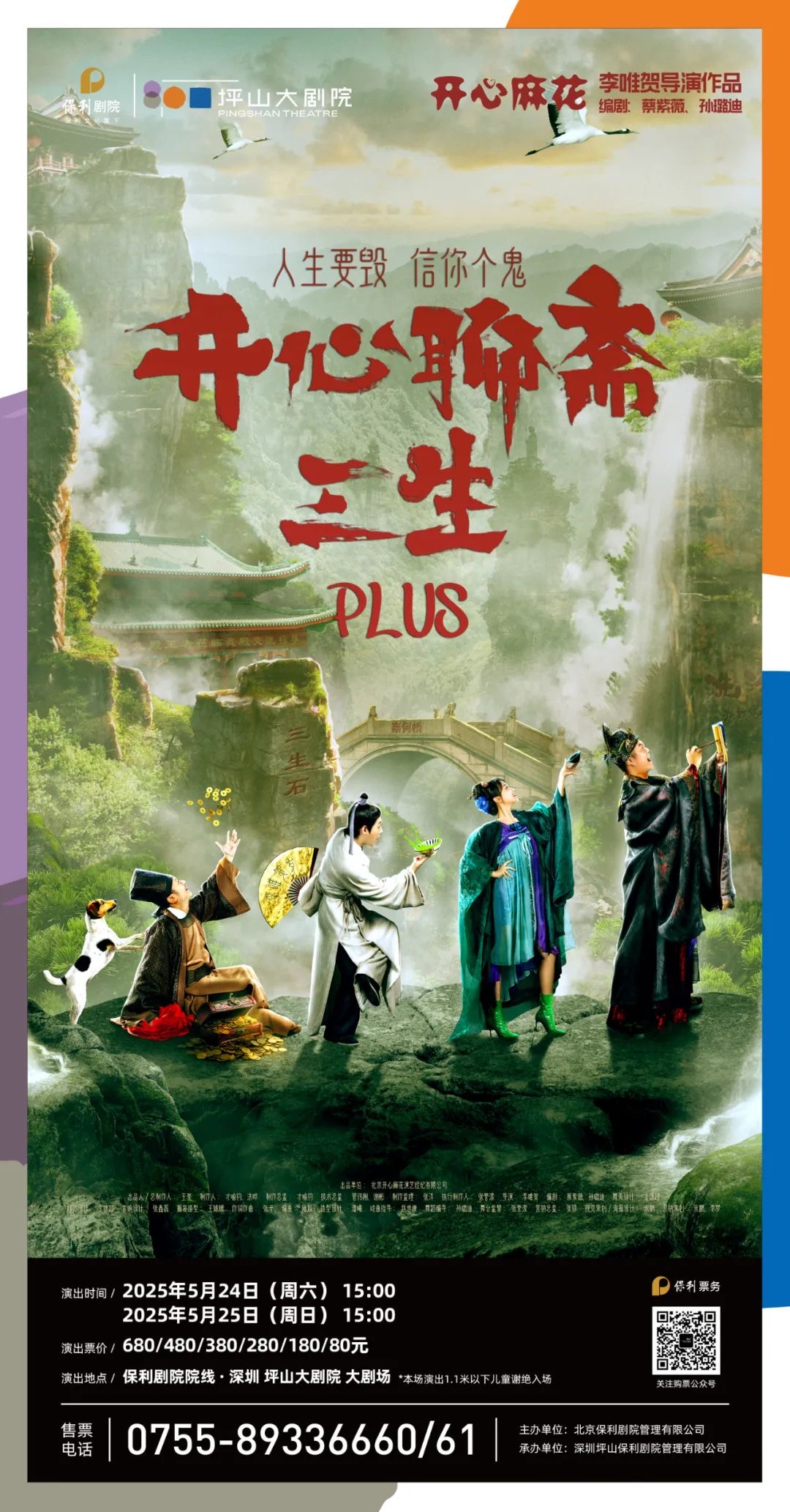 5月24日至25日15:00,开心麻花爆笑奇谈大戏《开心聊斋·三生PLUS》,保利剧院院线·深圳坪山大剧院两场连演。
