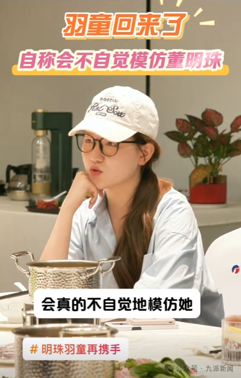视频画面显示,孟羽童正坐在餐桌前吃小火锅,同时分享自己的一些感悟。其中一段视频写道:“羽童回来了,自称会不自觉模仿董明珠。”视频中,孟羽童表示:“领导和前辈们会给人生种下很深的、积极的、正面的影响,每个人都会记住第一个老板,会模仿她,会不自觉地模仿她(董明珠)。”