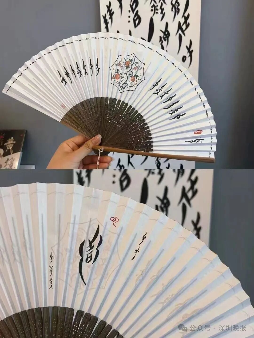 龚韵涵还在现场了解到了女书文化,并因此购买了一把女书扇子,“现场的老师用女书写上我妈妈和我的名字。这里的文创产品集传统和现代于一体,能让我更加深刻地感受到我们的文化魅力。”