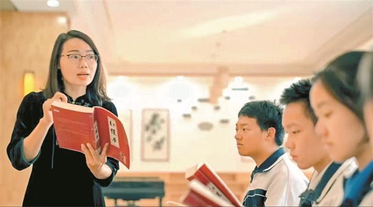 ▲高老师在“细品红楼梦中人”文创课上,引领学生品读林黛玉。