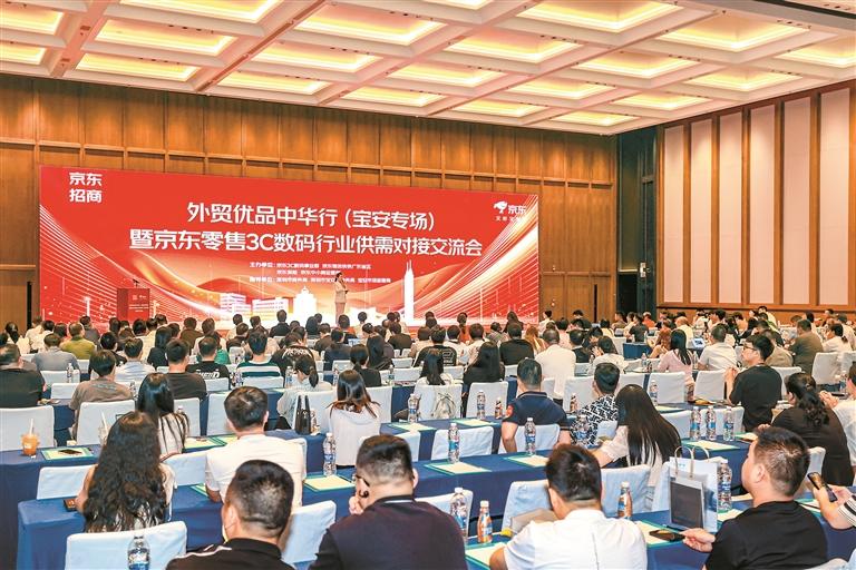 为贯彻落实广东省电商平台助力内外贸一体化座谈会会议精神,助力企业开拓国内市场、稳住外部市场,更好实现长期高质量发展,深圳市商务局、宝安区商务局、宝安市场监管局联合京东集团,于5月19日在宝安举办“外贸优品中华行(宝安专场)暨京东零售3C数码行业供需对接交流会”,推动“外贸尖兵”与“内需引擎”协同发力,为企业架起“双循环”立交桥。