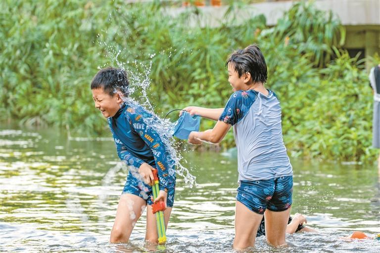 漫步福海河滨河步道,张弛有度的空间体验、立体交错的步道系统,水清岸绿、花草丰茂,一座集行洪、生态、景观、休闲等功能为一体的高品质“城市会客厅”跃然眼前。在西部市级中心区,七彩碧道建设工程一期全面铺开,松岗河、沙井河、新桥河等6条碧道同步推进,为当地居住和就业人群打造具有高品质的亲水公共空间,让民众能够更亲近自然、享受惬意的水岸生活。