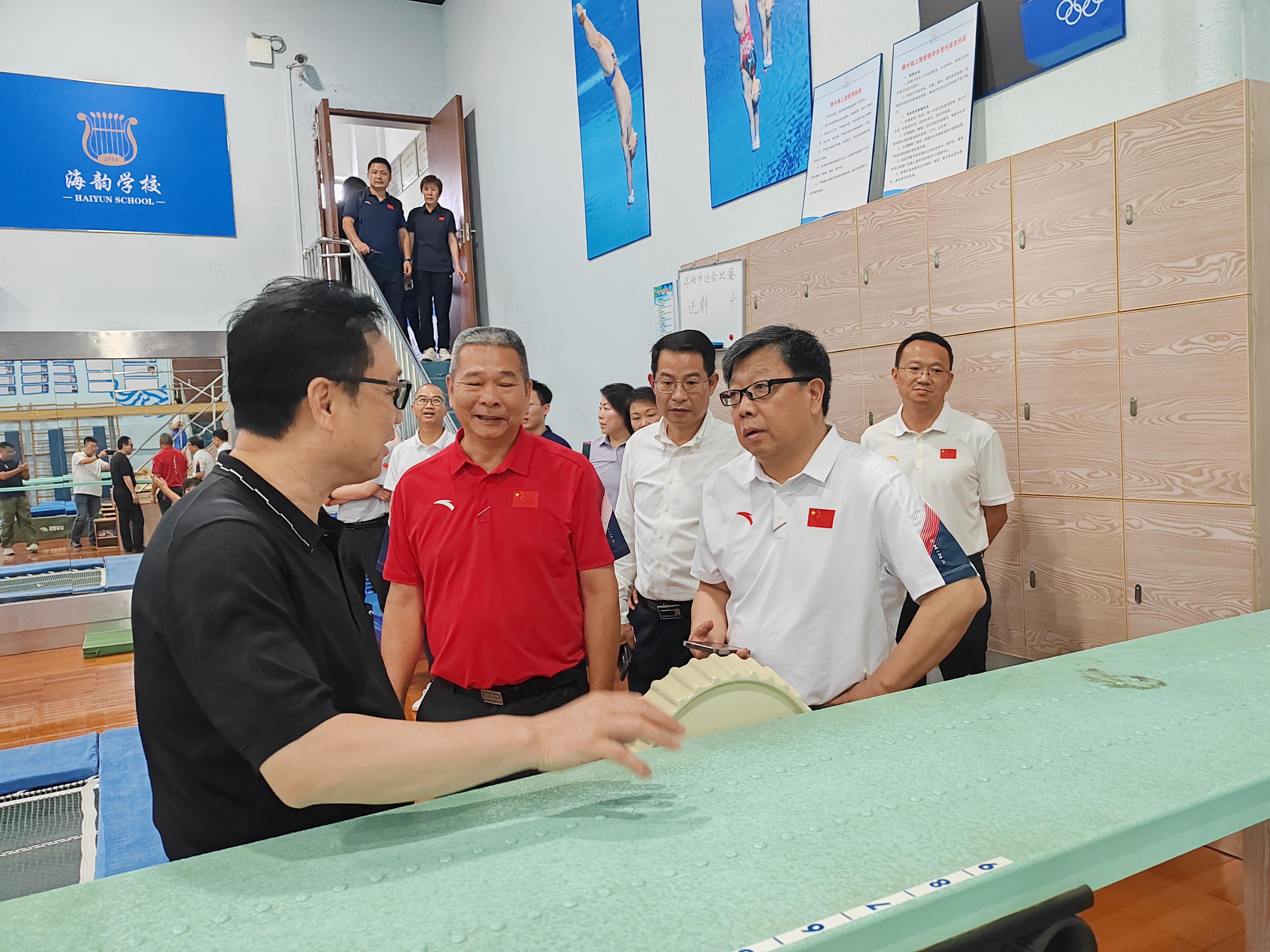 作为宝安区跳水、健美操、足球等项目的传统优势学校,海韵学校近年来成绩斐然。李辉现场详细了解了学校近年来的办学情况、校园体育开展和竞技成绩等方面成果,并走进学校的跳水训练馆,详细了解学生们的训练情况和场馆内的软硬件设施及保障措施。得知海韵学校跳水队从2014年与宝安体校联合创办至今,11年间已向上级专业队输送多位优秀后备力量,并有郑好等人陆续在国家省市等各级比赛中连获殊荣,李辉频频点头。