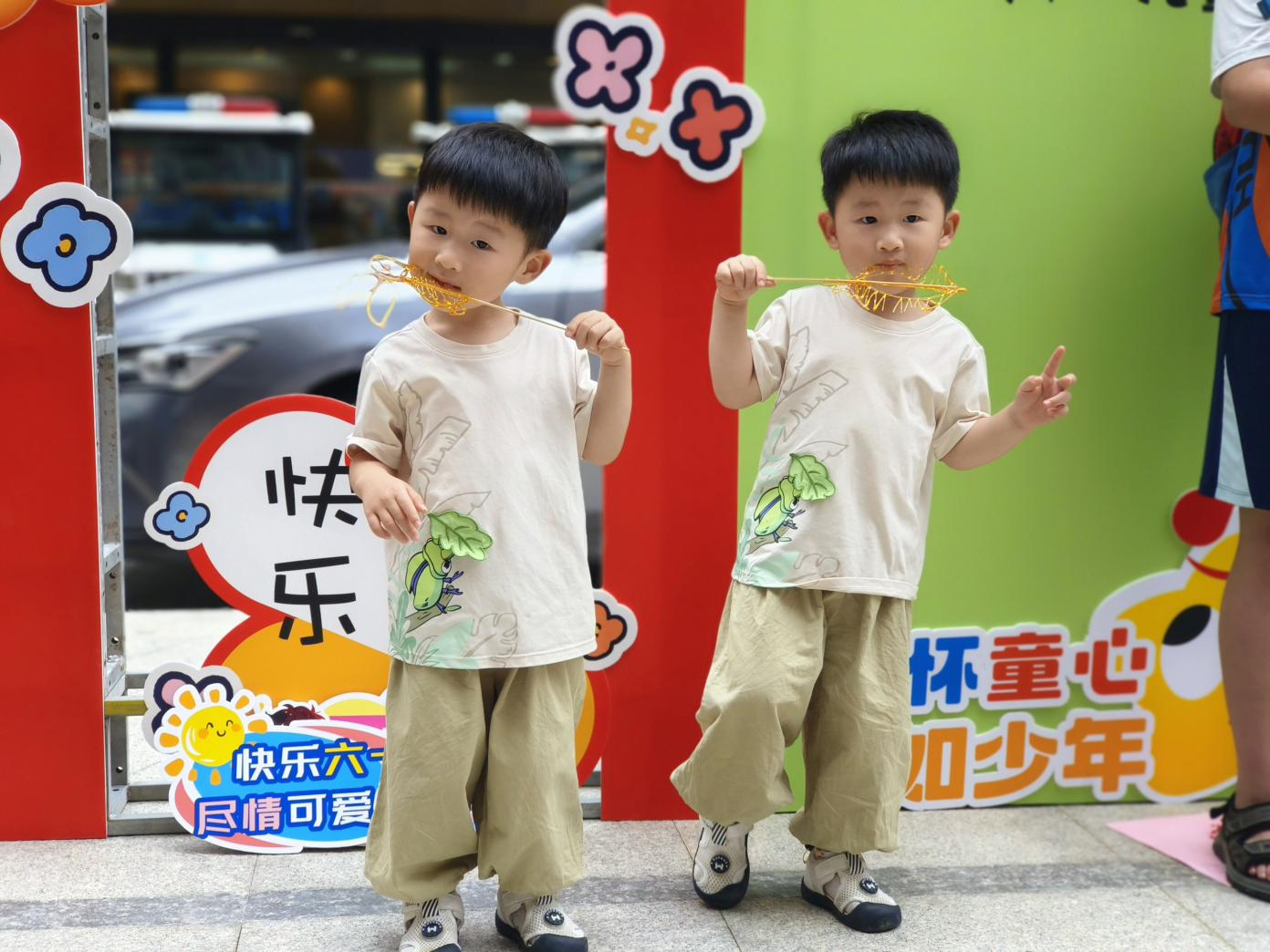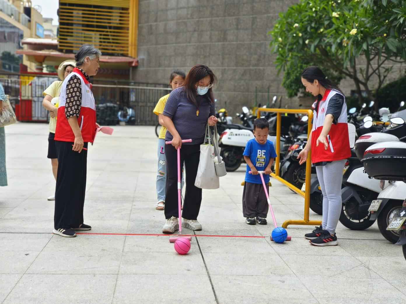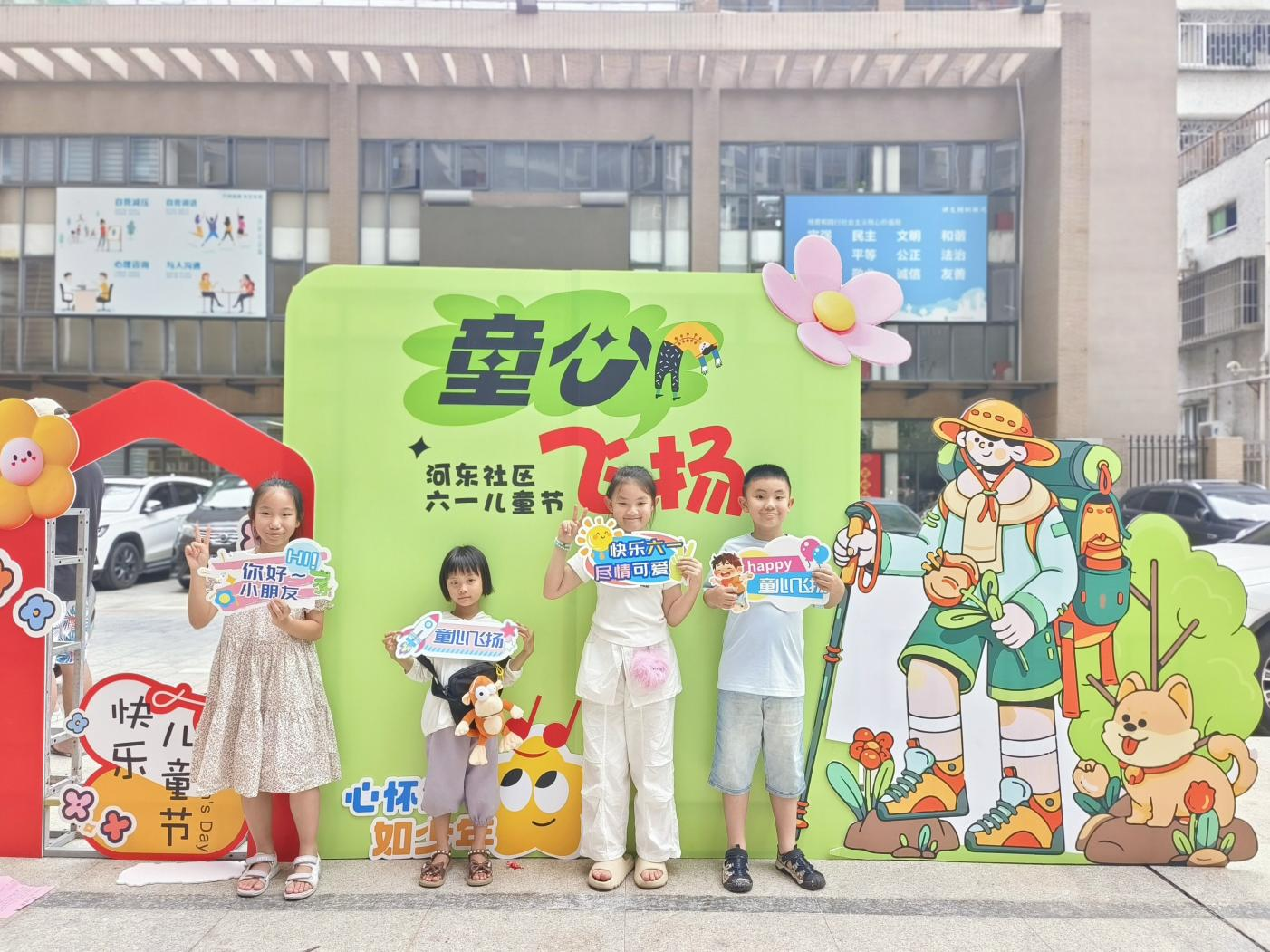 除了精彩的游戏环节,社区工作人员还贴心准备了遮阳棚、饮用水和休息区,为参与活动的家庭提供全方位的服务保障,也让邻里之间有了更多交流的机会。临近活动尾声,孩子们手持礼包在主题背景墙前合影,纯真笑脸与五彩气球相映成趣,定格节日美好瞬间。