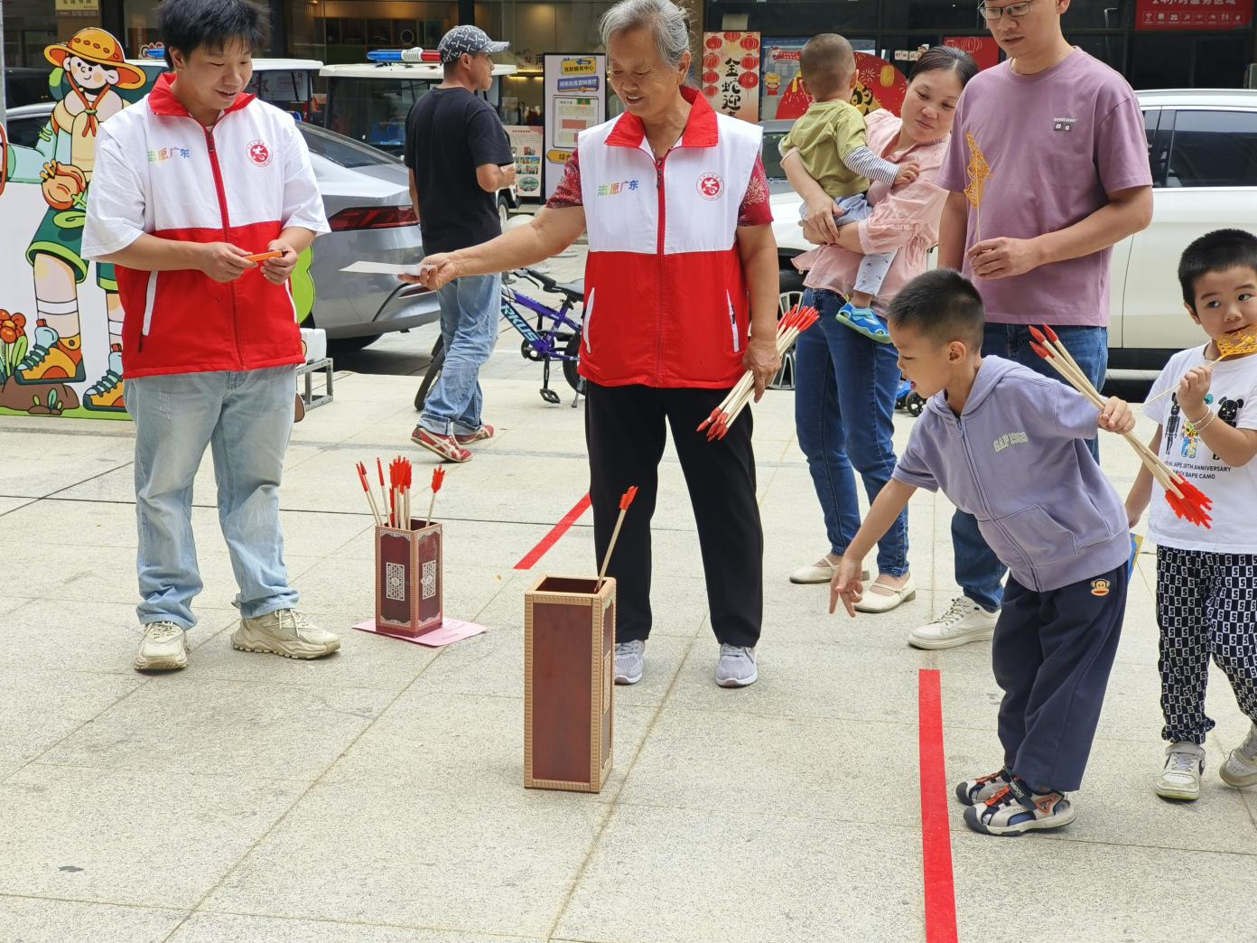 现场,家长与孩子们在欢快音乐中迅速投入各项活动。亲子毛毛虫游戏中,一家人齐心协力爬行,场面温馨有趣;旱地冰球区孩子们你追我赶,尽显运动风采;趣味投壶让孩子们初次体验传统游戏的乐趣;两人三足比赛笑声与加油声不断,互动感十足;恐龙蛋化石手工环节,孩子们化身“小小考古学家”,从恐龙蛋中发掘恐龙化石,激发儿童对自然科学的兴趣;欢乐套娃娃区域人气高涨,孩子们挑战自我,收获满满成就感;集章兑礼传递成长理念,点燃童真热情。