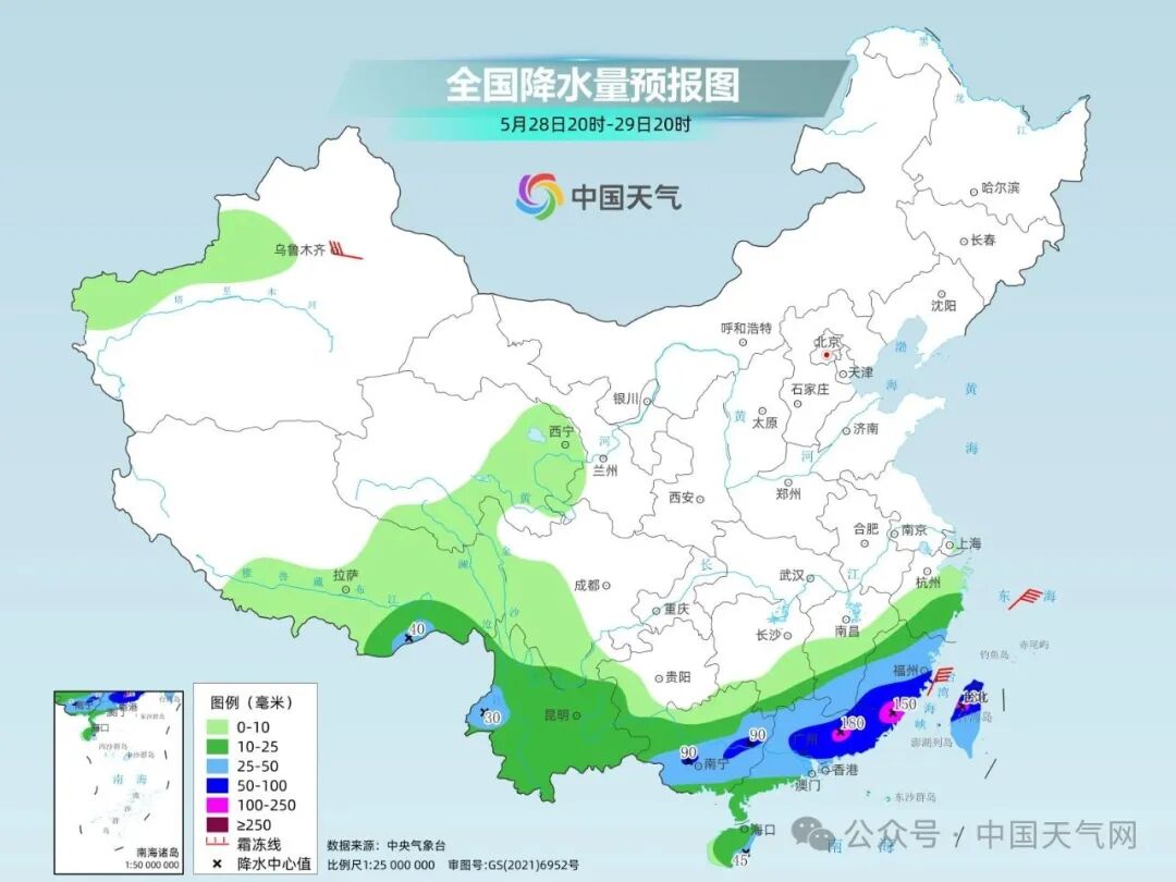 28日,湖南东南部、江西南部、福建、广东北部、广西东北部、台湾岛北部等地有暴雨或大暴雨,华南地区不稳定能量较强,有明显短时强降雨。