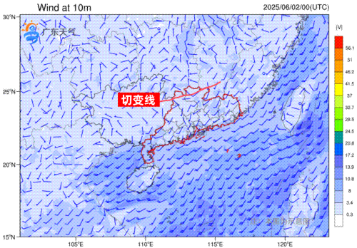 6月1日,南风控场,温度上升,不稳定能量积聚,珠江口西侧到西北部将自南向北迎来较明显的雷雨。