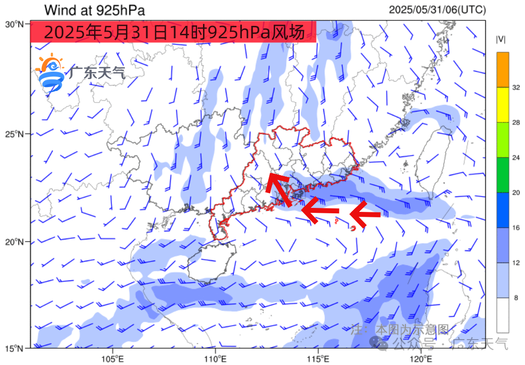 5月31日,低层东到东南风将在南部沿海搞点“小动作”,珠江口及其西侧仍有较明显降水,午后肇庆、从化等地局部也可能上演“对流大戏”。