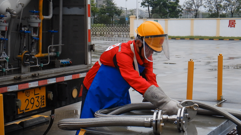 本次竞赛完整还原槽车卸液全流程,创新设置20余处风险排查点,将实战风险防控能力纳入标准化考核,“这在全国具有开创性意义。”本届赛事专家团队成员、前省赛裁判长高培文也补充道,为确保这一高风险模拟操作安全进行,每个工位都配备了经验丰富的场站运行员担任安全员。