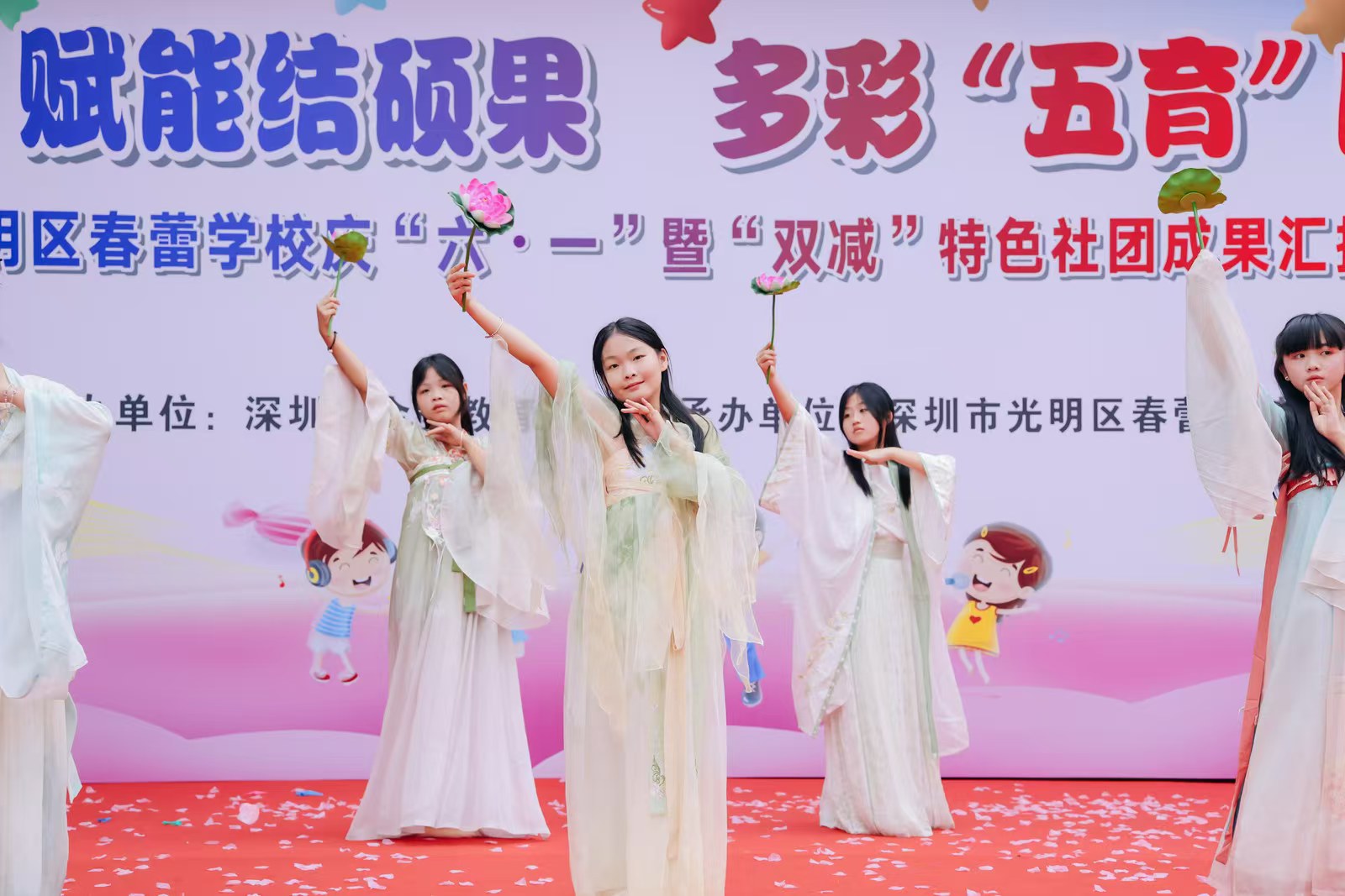 日前,光明区春蕾学校举办2025年庆“六·一”暨“双减”特色社团成果展演,用现场展演和主题展板相结合的形式,欢庆儿童节,展示“双减”教育成果。