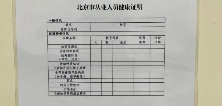 此外还有时间成本。“办健康证经常需要排队,全部检查完起码得1个多小时,这还没算往返路上的时间,等于小半天出去了。”赵哥说道,“而且健康证通常都不能当天出结果,得等上3—5天,所以还得再回去一趟。”