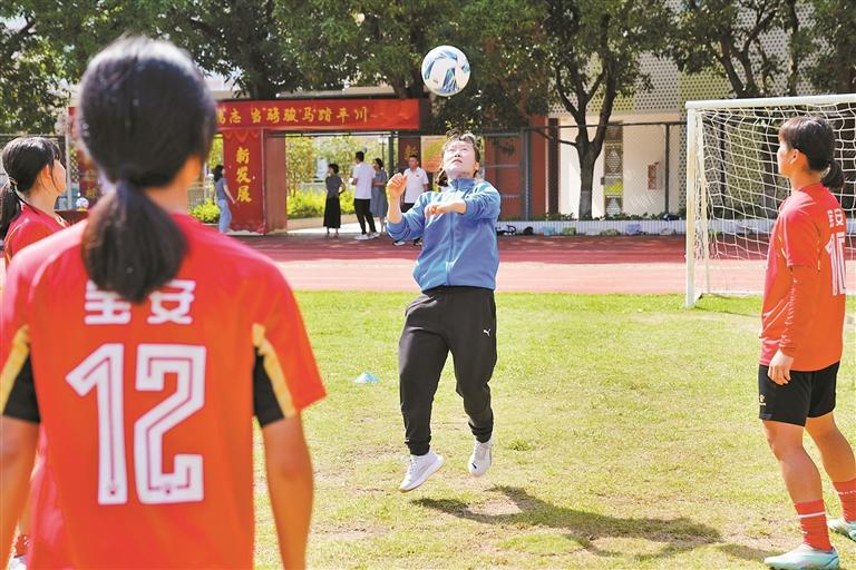 彭玉华校长向两位冠军介绍了宝安区近两年推出的“凤凰英才”计划,诚邀她们在运动员生涯结束后回到宝安就业,效力曾为之奋斗的宝安女足。将陈晨带上绿茵场的功勋教练张岩,依旧语重心长,叮嘱她们不仅在训练场要“好好学习”,更要持续积累业务知识:“我相信,你们未来一定会成为非常棒的教练。”