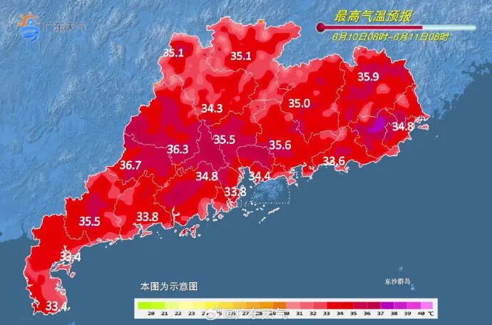 6月10日晴天到多云,深圳局地有短时(雷)阵雨,气温27-34℃,中北部及人口密集区可达35℃或以上;