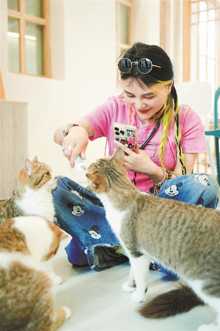 ▲侘极居猫咖馆,市民跟猫互动玩耍,享受美好的时光。