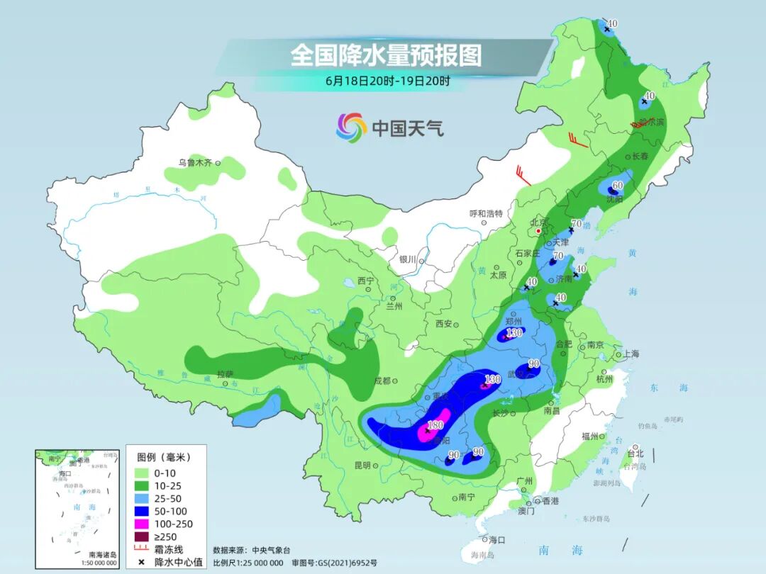 18日起至21日,旺盛西南暖湿气流沿副热带高压边缘北上,同时东北一带有冷涡发展,引导冷空气南下,冷暖空气在长江附近对峙,形成一条长达上千公里“西南-东北”走向的梅雨锋,暴雨、大暴雨将从贵州、广西北部一带一直延伸至河南、山东、江苏一带,并缓慢南压。