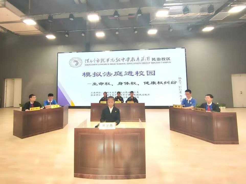 近日,龙华高级中学教育集团民治校区联合民治街道司法所,共同举办“法治校园行”主题活动。活动以模拟法庭为核心,通过沉浸式实践教学,让300余名师生近距离体验司法审判流程,感受法律权威。