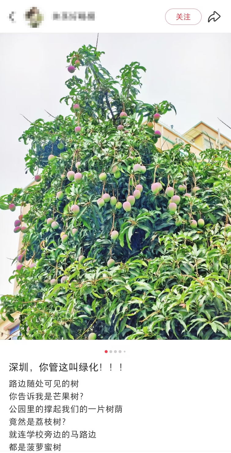 还有红荔路的芒果大道,荔枝公园的荔枝林……毫不夸张地说,深圳的夏天,就是一场流动的、免费的、沉浸式的水果大赏。社交媒体上,网友们都在疯狂晒图↓↓↓