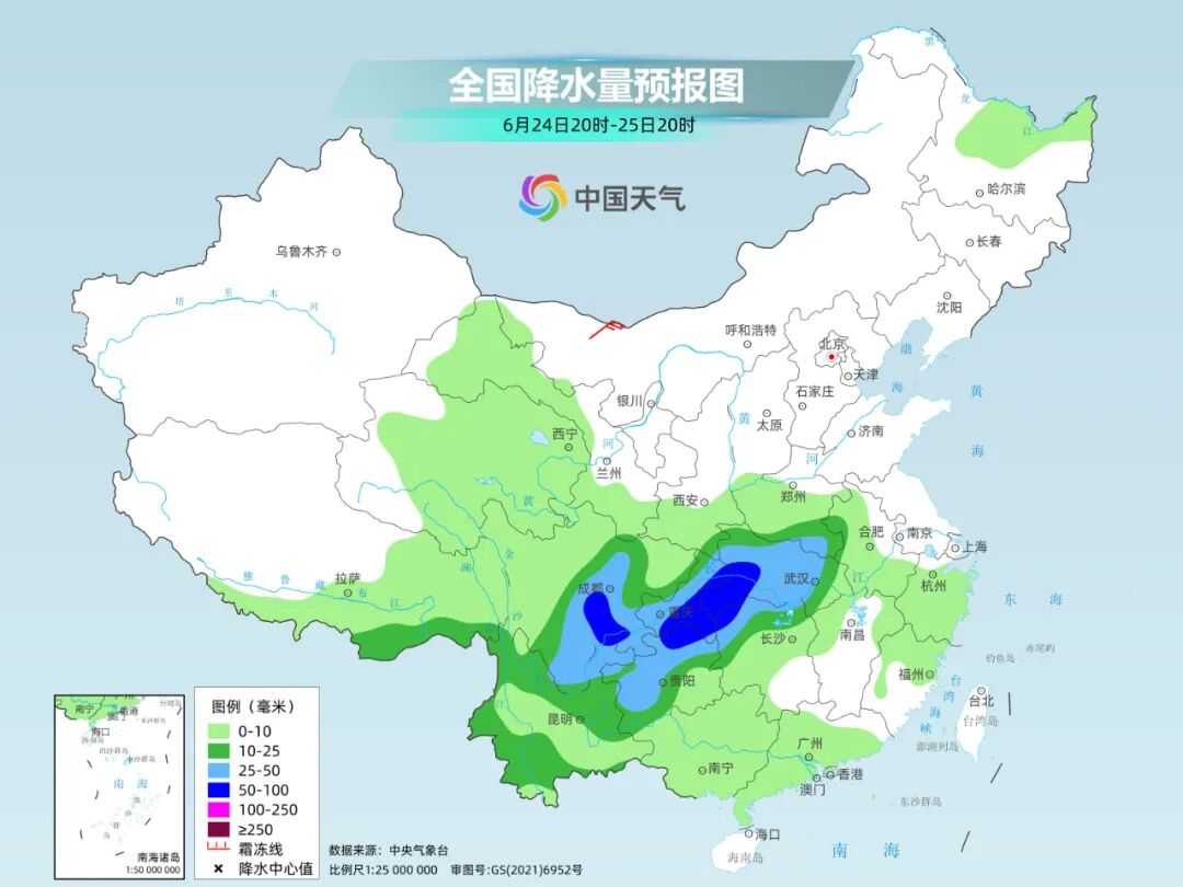 24日至25日,随着副热带高压减弱东退,输送水汽减少,长江中下游地区降雨有可能暂停。