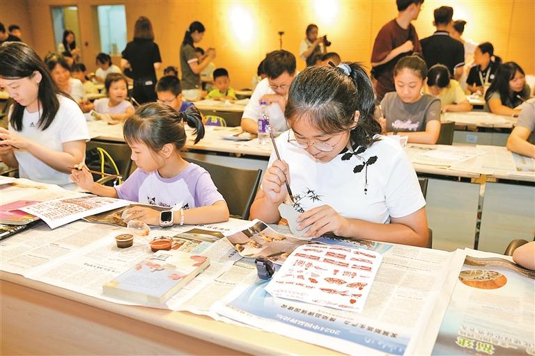市民执笔彩绘陶坯,体验仰韶彩陶纹饰魅力。