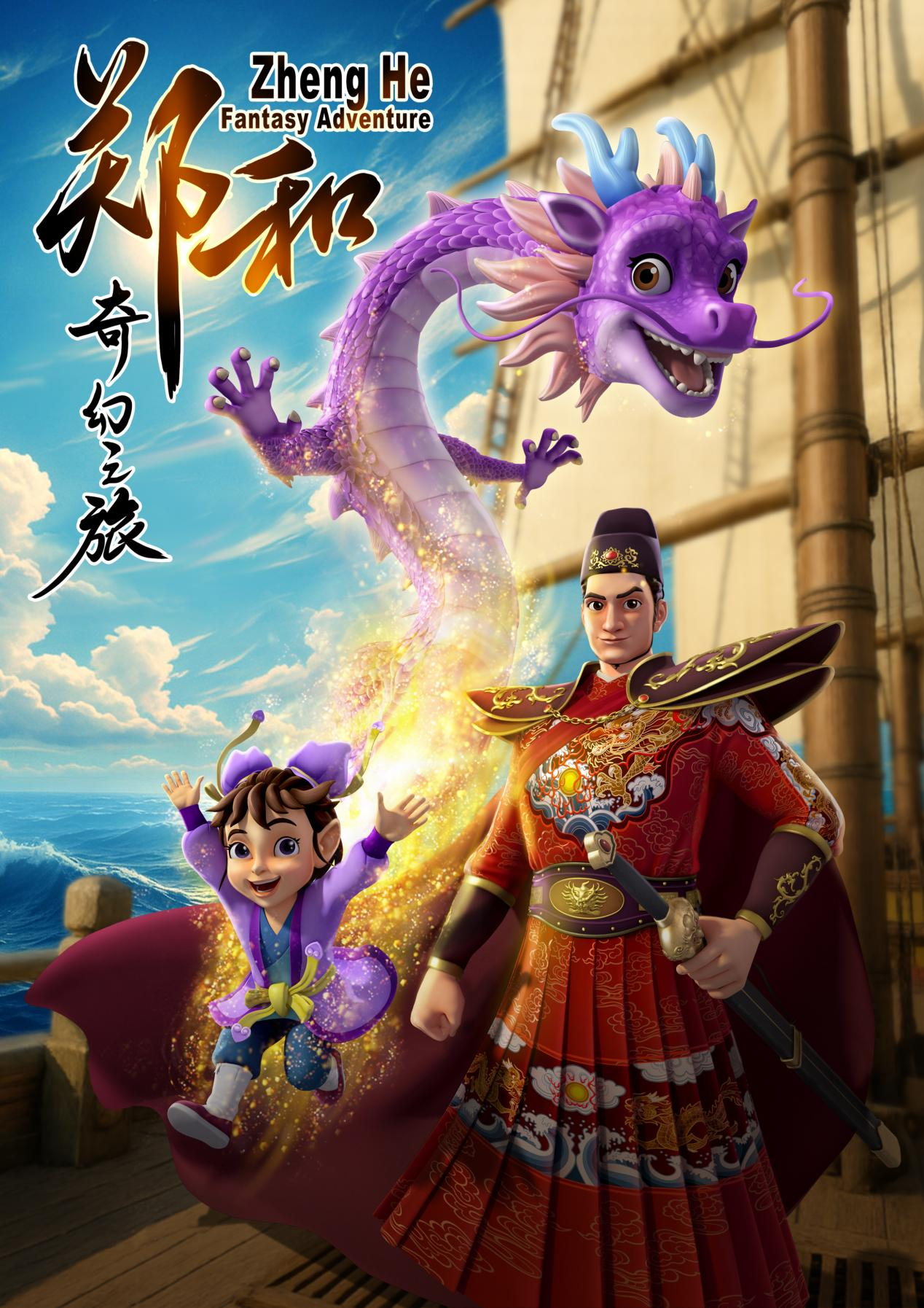 《郑和奇幻之旅》讲述这位传奇航海家率领舰队远航的精彩故事。旅途中,郑和与船员们遭遇神秘海怪、探索古老秘密并战胜强大对手,同时,他们也推动了文化交流,进行和平外交。动画把历史人物与奇幻角色相融合,比如,故事中加入了帮助船员化解危机的紫色巨龙“葫芦”,也有为团队带来幽默与智慧的骆驼“毛毛”。