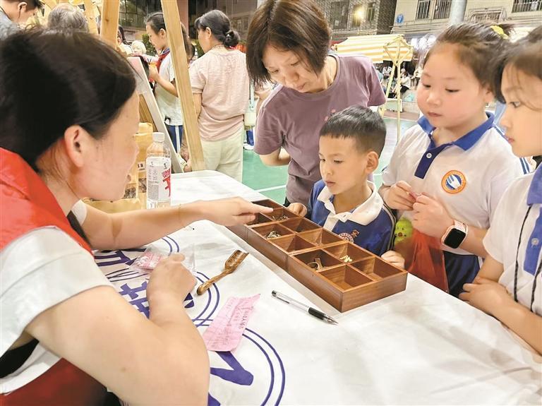 活动现场设便民服务、共享服务、教育实践、公益活动等多元素摊位,为居民呈献一站式生活服务体验。居民在这里既能享受到社区公益服务的温馨,也能领略书法、中草药等中华传统文化的韵味。集市的盎然趣味和丰富形式吸引众多居民前来“赶集”。