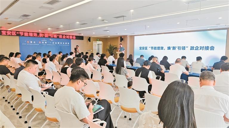 6月24日,宝安区发展和改革局联合区工信、住建、生态、企服、10个街道办在金融超市举办全国节能宣传周主题政企对接会,旨在通过政策宣讲、案例介绍,加深企业对实施大规模设备更新和消费品以旧换新政策和绿色低碳的认知,推动企业开展设备更新,落实绿色低碳化改造,为宝安的绿色发展描绘崭新蓝图。宝安区各职能部门和街道有关负责人,以及工业、建筑、环保等领域58家企业及园区代表参会。