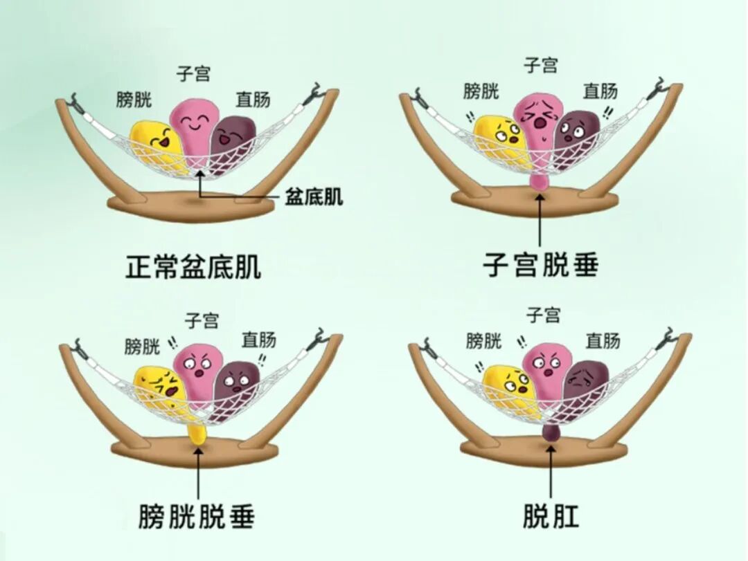 女性的盆底,就像是一个“吊床”,承托着膀胱、子宫、直肠等盆腔脏器。要是这个“吊床”出了问题,变得松弛、没劲儿了,那盆腔脏器就可能移位,进而引发一系列让人烦恼的症状,如尿失禁、大便失禁、盆腔脏器脱垂、性生活障碍等。