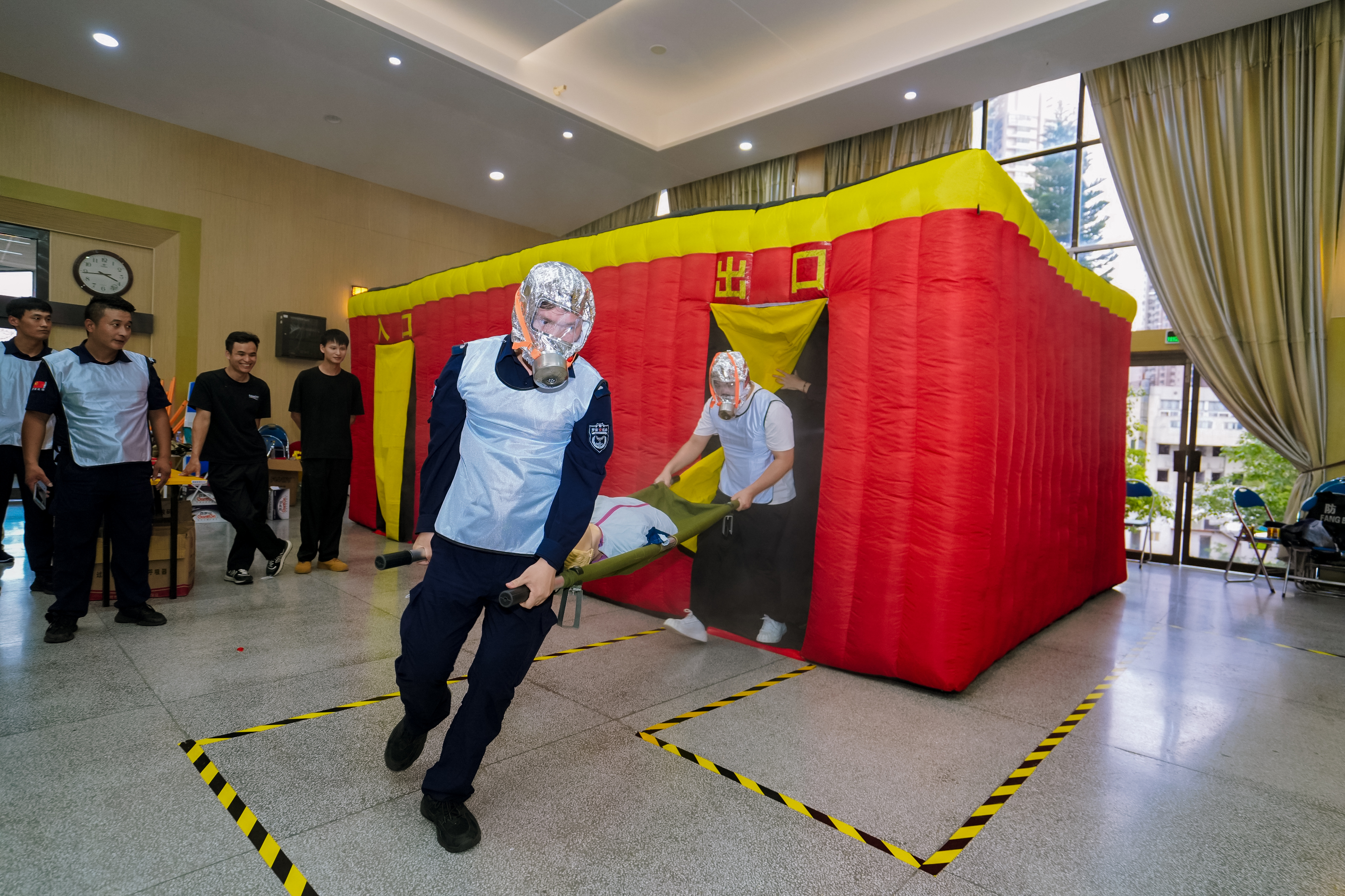 在消防安全疏散体验厅,队员们通过模拟火场环境,掌握了科学逃生路线规划;在消防培训区,系统学习了防火规范与日常火灾预防知识;在高空逃生模拟体验区,亲身体验了不同场景下的逃生技巧;幻影成像剧场通过沉浸式影像技术,生动展示了火灾危害与应急处置流程;野外安全模拟体验区则针对大鹏山海特色,教授了野外生存避难技能。