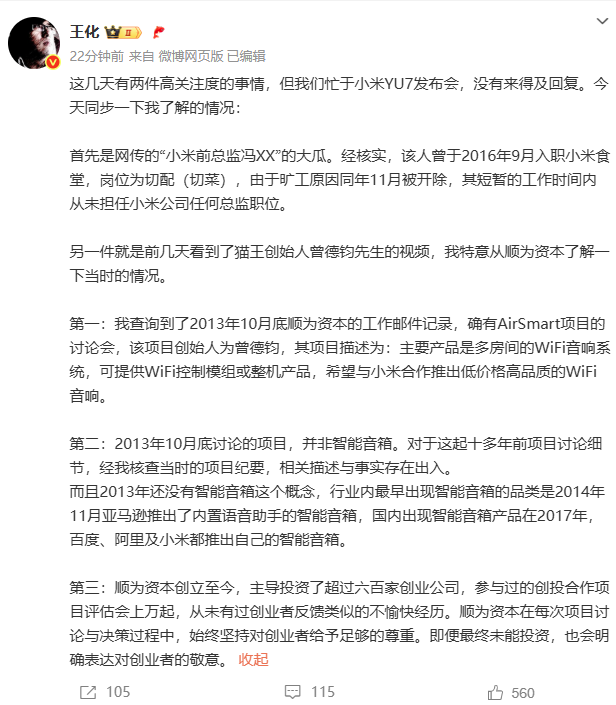 这几天有两件高关注度的事情,但我们忙于小米YU7发布会,没有来得及回复。今天同步一下我了解的情况: