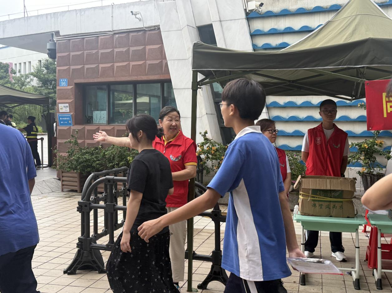 中考期间,社区志愿者们早早来到考点门口,迅速投入到志愿服务中。饮用水整齐排列在服务站的一侧,方便考生和家长随时取用,在炎炎夏日里为他们送去清凉;文具区摆满了2B铅笔、黑色签字笔、橡皮等考试必备用品,确保忘记携带文具的考生能及时拿到“考试神器”;考虑到多变的天气,志愿服务点还准备了足量的雨伞。
