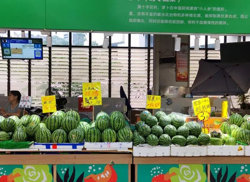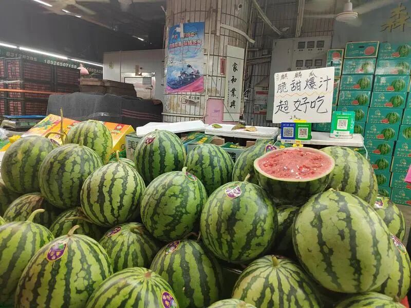 今年夏季,西瓜也再次迎来降价。“农家小西瓜超级甜3元”“正宗麒麟瓜2.8元/斤”,在福田农批市场,大部分商户都在显眼位置挂着类似的招牌,陕西麒麟品种更是卖到2.5元/斤。“今年西瓜零售价为3-4元/斤,相较往年下降了10%-20%。‘热门’品种红麒麟的售价低至2.99元/斤,降幅甚至达20%以上。”蔡华健说。