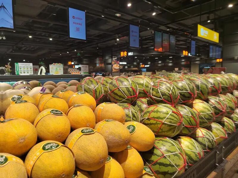 甘美西瓜的销量则有所下降,但红麒麟西瓜的销售态势仍然火热。相比去年,西瓜销量接近翻倍。据介绍,6-7月,西瓜和榴莲的销量依然处于爆发期,近期西瓜相关品种仍将迎来销量高峰。