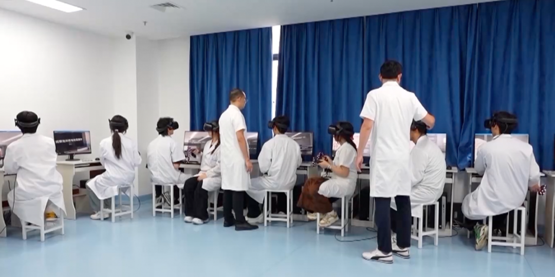 在南昌大学第一附属医院的模拟实训基地,同学们可以通过VR学习掌握老年人在外突发疾病的处置方式,这些现实场景中常碰见的突发情况处理,都是老年医学与健康专业学生的必修课。