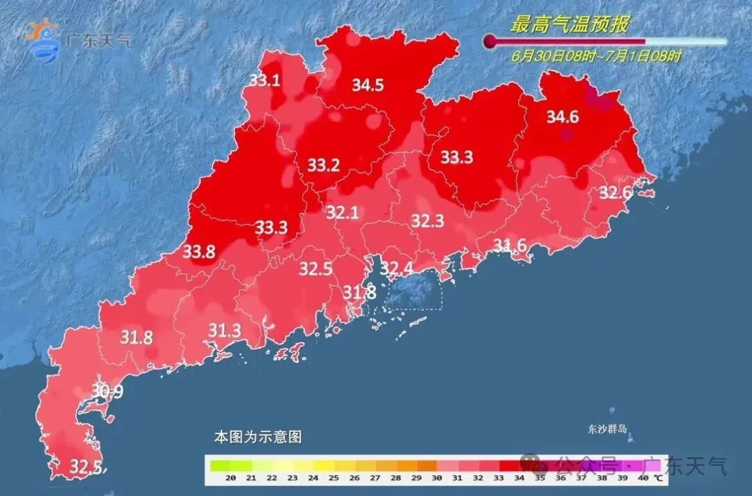 6月30日,清远、粤西沿海、粤东和珠江三角洲大部市县多云间阴天,有中(雷)雨局部暴雨;
