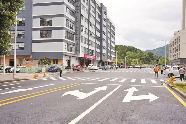福永街道高度重视居民出行诉求,为推动道路尽快改造,在推进立项的同时,组织多部门与相关方沟通协商,最大程度保障沿线居民及工业园区出行需求。2023年底,兴益路正式开工,主要建设内容包括:将现有双向两车道拓宽至双向四车道,拆除原混凝土路面,新建机动车道、非机动车道、人行道,对拓宽部分进行软基处理,并完善交通安全、监控及市政配套设施。目前项目总体形象进度已完成95%,施工方正进行标识划线及绿化作业。“待订制的道路标牌、交通信号灯等设施到位后,工程将基本完工。”施工方负责人吴汉河介绍。