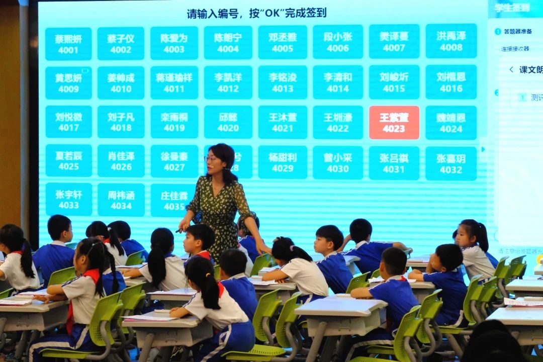 教学中,学生借助智能终端与教师实时互动,完成答案选择、学情调查及文段朗读等任务,系统对朗读实时评分的功能尤为亮眼。教师根据高频错词开展针对性训练,经背诵复述强化后,学生整体得分显著提升。这种“实时检测-精准反馈”的模式,有效破解了传统课堂难以兼顾个体指导的痛点,其“数字+智能”的教学理念与实践成效,也引发听课教师的高度关注与深入探讨。