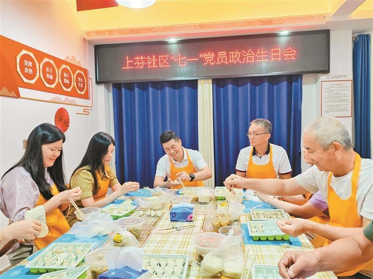 上芬社区党员包饺子。