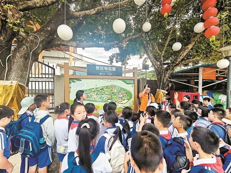 ▲中山大学深圳附属学校学生在光明农场大观园开展研学。