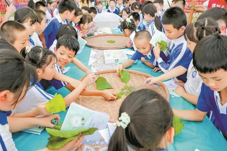 龙岗区坂田街道宝岗小学学生担任“拯救丝绸村的小侦探”,开展“丝路上的蚕文化:从蛹到丝的艺术体验”研学活动。活动中,学生系统探究蚕桑文化起源,在桑叶种植区与桑基鱼塘间进行实地考察,细致观察蚕的生命周期。同时,通过学习丝路文化,学生深刻体会古代丝绸之路的历史意义及蚕桑文化在其中承担的重要角色。本次研学使学生在沉浸式学习中既获得知识,亦体验了探索乐趣。