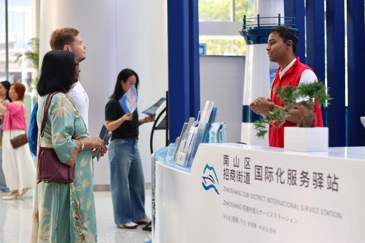 依托街道虚拟园区企业服务阵地,构建“企服超市”,为外资企业提供人才、用工、用地或用房、融资、法律、社会事务等“一揽子”服务。在蛇口邮轮母港设置南山区招商街道国际化服务驿站,配备英语、日语、韩语等志愿者及社工,为港口往来出入境内地、港澳、外籍旅客提供多语言翻译、文旅指引、答疑等服务,为“抵深第一站”消除语言的壁垒。驿站自2024年6月建成以来,累计服务国际邮轮旅客超5万人次。