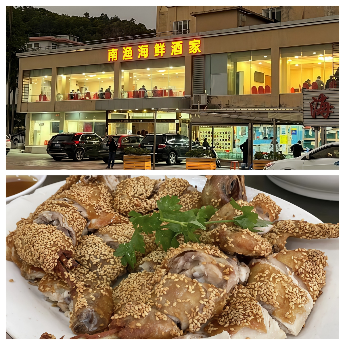 大鹏半岛除了有丰富的海洋资源外,山地也很多,这里有包括了深圳第二高峰——大鹏山(七娘山)在内的深圳10座独立山峰中的5座,所以不仅海鲜多,鸡鸭等禽类也是餐桌上的佳肴,“窑鸡”曾是大鹏一道声名远扬的菜式。欧瑞尧经常和朋友一起光顾的南渔海鲜酒家,有一道头牌——芝麻鸡,也相当出色,外皮上裹满了芝麻,鸡肉汁水仍完好地保留其中,咬上一口,香脆与爆汁,带来味蕾双重享受。