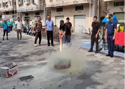与此同时,社区工作人员还指导居民使用灭火器灭火,强化“提、拔、握、压”操作要领;物业微型消防站队员演示了消火栓水带快速连接技巧,整个演练过程严格遵循“1分钟响应、3分钟处置、5分钟协同”的应急标准,提升了消防队员应急救援能力。