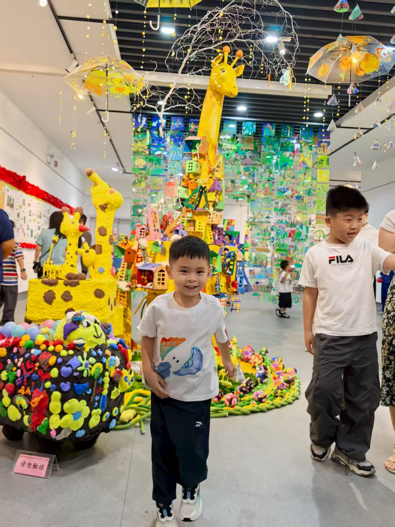 自展览开幕以来,每天都吸引不少家长、小朋友前来观展,他们被这些可爱的作品深深吸引。参观过程中,不时能听到他们的惊叹和赞美之声。现场的每一幅作品都仿佛在讲述着一个独特的故事,让人情不自禁地沉浸其中。小朋友们看到自己的作品被展示出来,脸上洋溢着自豪和喜悦的神情,他们相互交流着创作的灵感和过程,分享着彼此的快乐。老师们也纷纷拿出手机,记录下这美好的时刻。